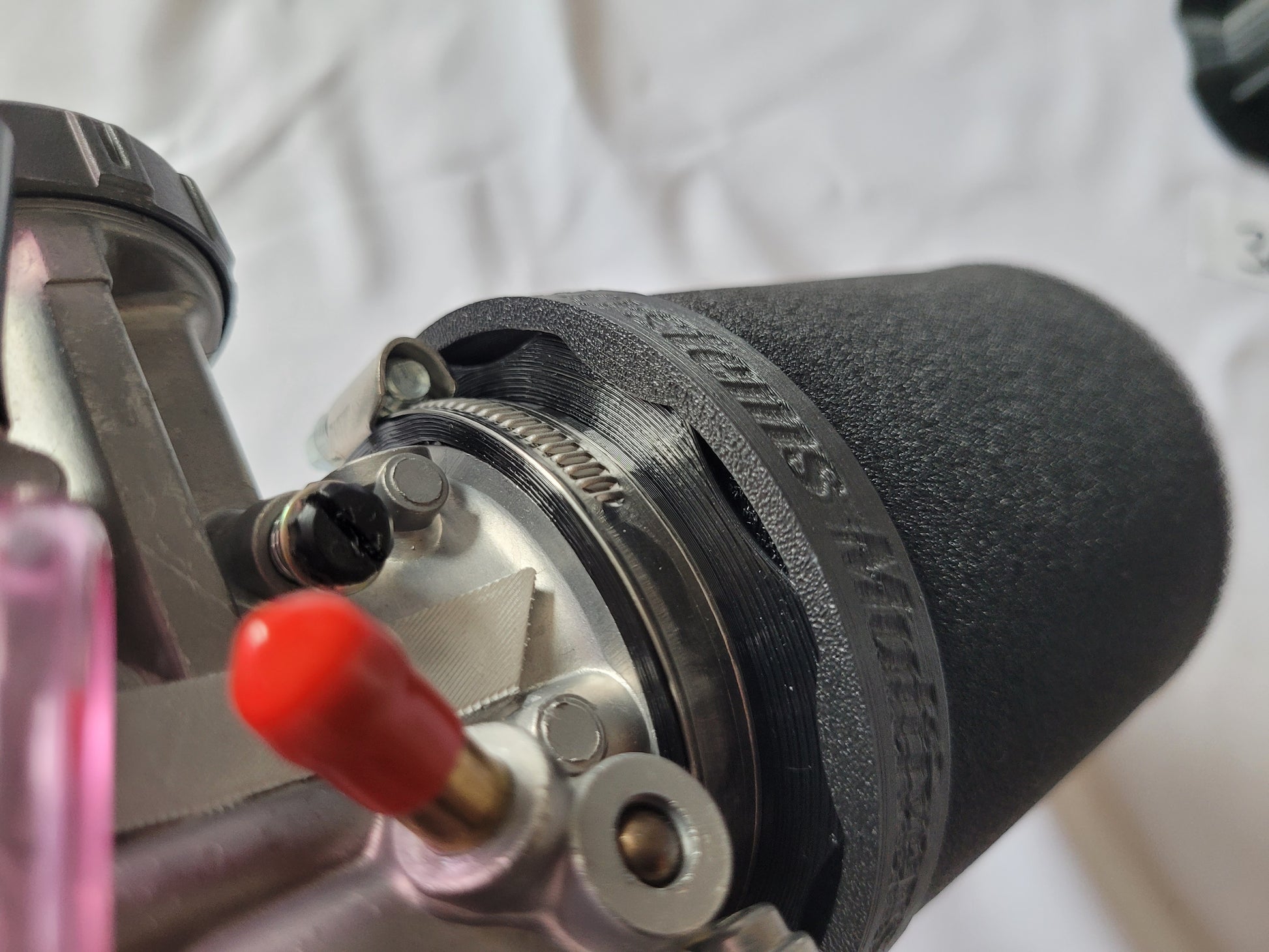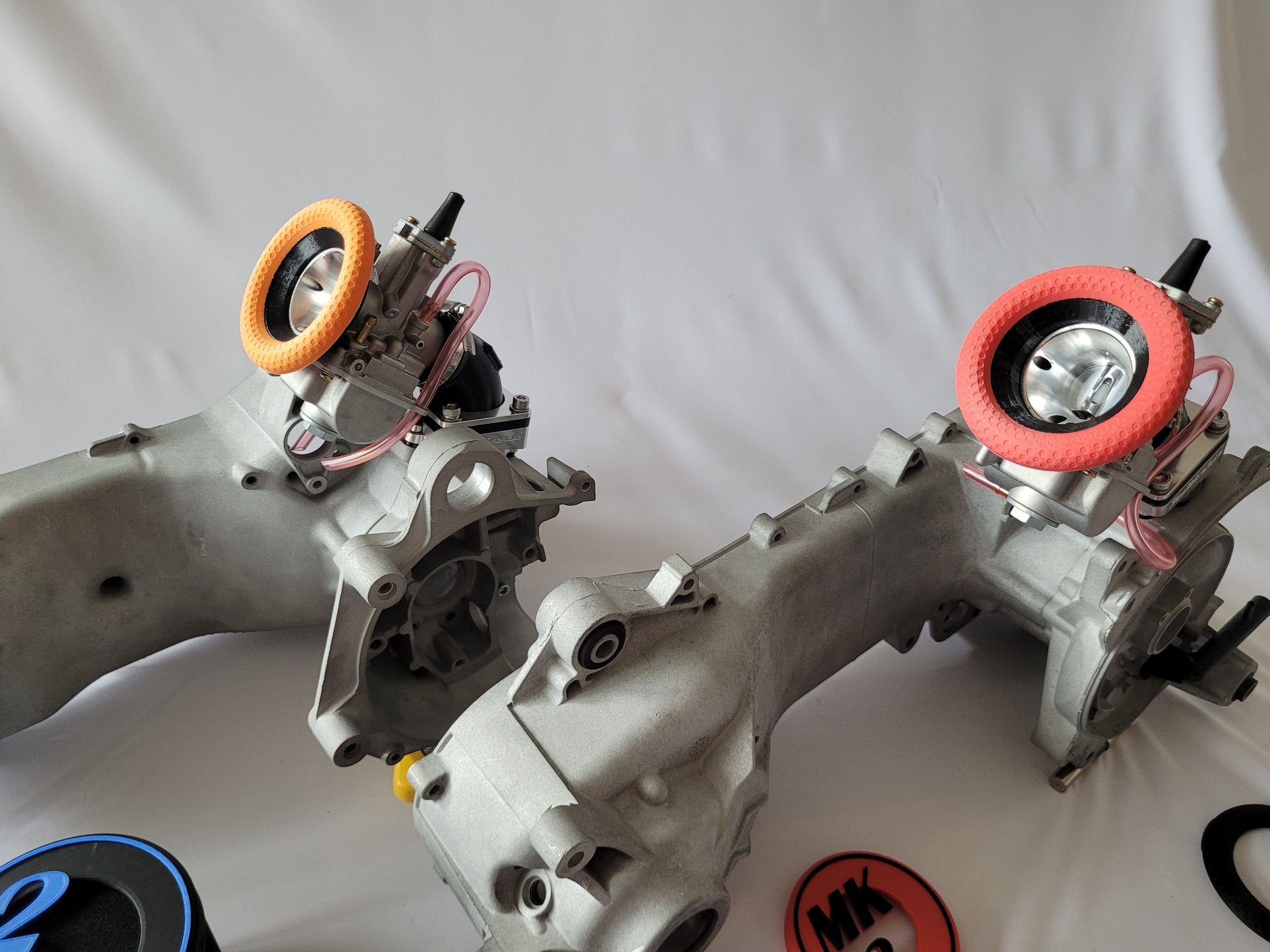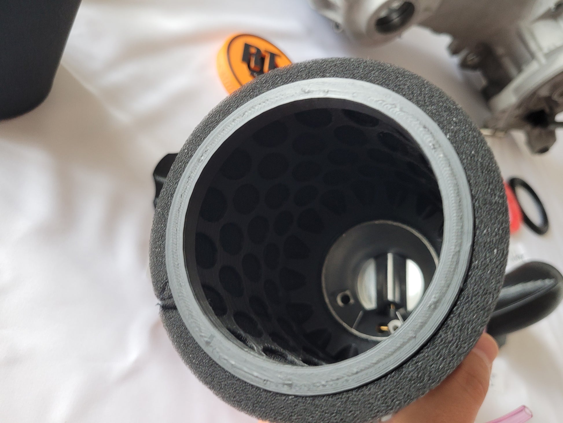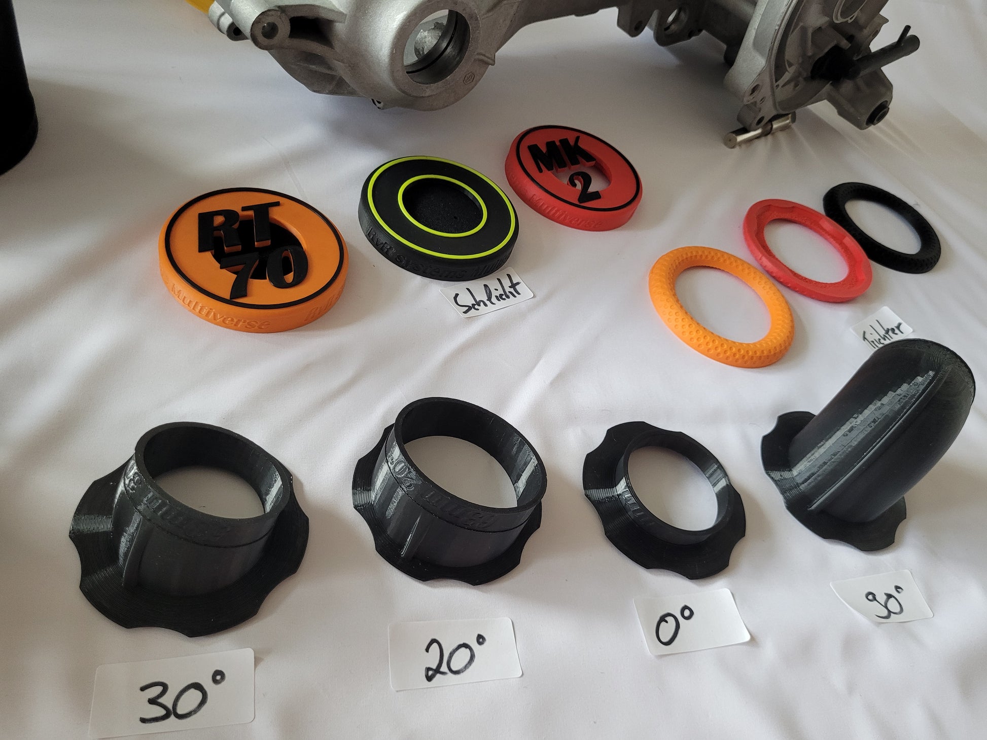 - Vergaser-Anschluss (TPU flexibel) mit eingelassenen Magneten und Verdrehverschluss. Passt auf beide Luftfilter Varianten und auch auf den Trichter! (1Anschluss für 3 Varianten)